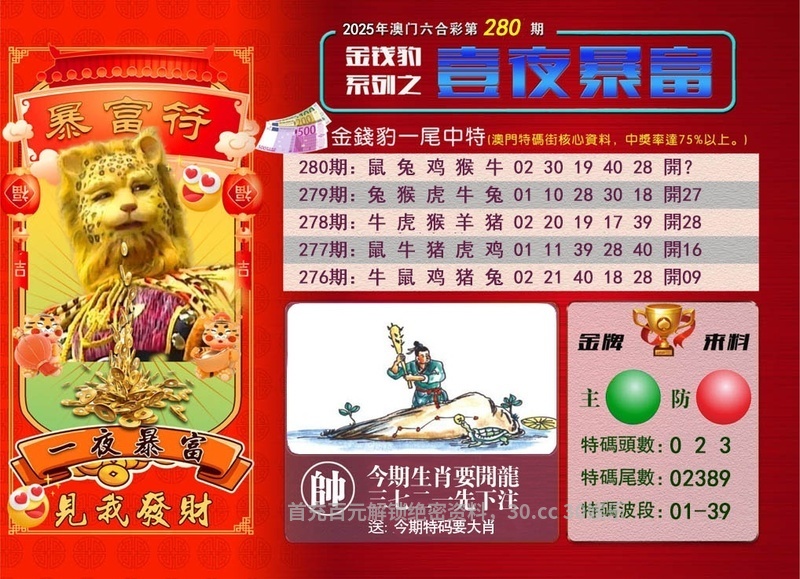 280期:单『牛鸡猪蛇』双『龙虎猴马』开鼠42错 | |||